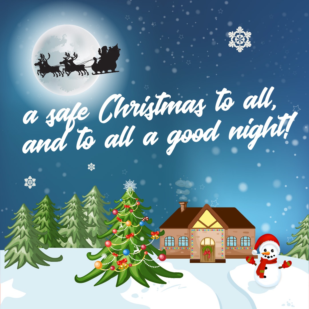 And Santa exclaimed as he flew out of sight, A safe Christmas to all, and to all a good night!
